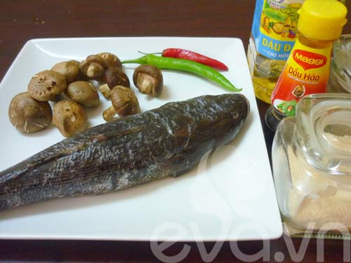 Nguyên liệu:- Cá bống tượng: 1kg- Nấm hương hoặc nấm rơm: 100-200gr- Ớt sừng hoặc ớt Đà Lạt màu xanh đỏ- Hạt tiêu: 1/2 thìa cà phê- Hạt nêm: 2 thìa cà phê- Dầu hào: 2 thìa cà phê- Dầu ăn